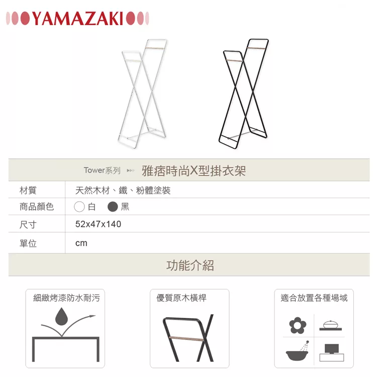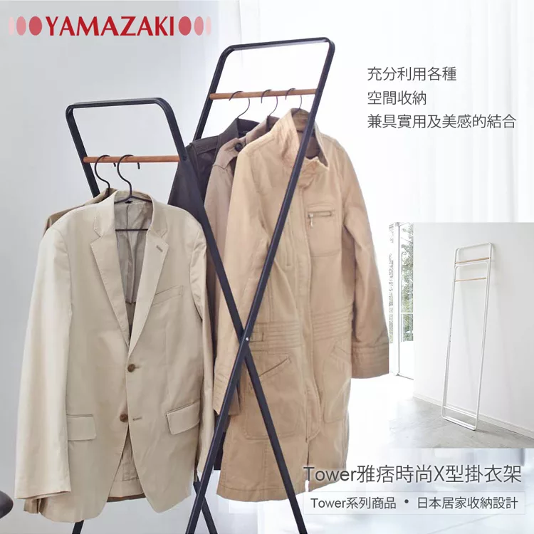 【YAMAZAKI】tower雅痞時尚X型掛衣架(黑)-日本原裝進口